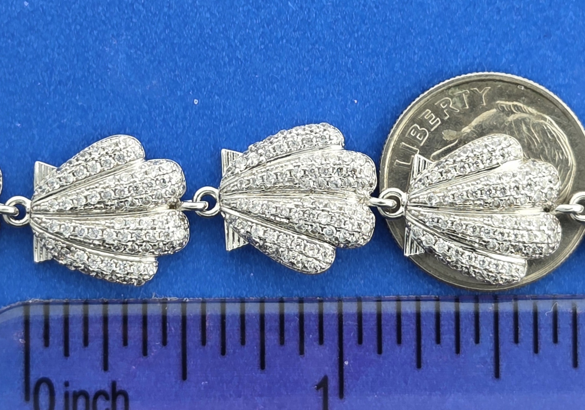 Alamea sunrise scallop shell bracelet. The bracelet is sterling silver & rhodium plated, pave’ set clear cz’s