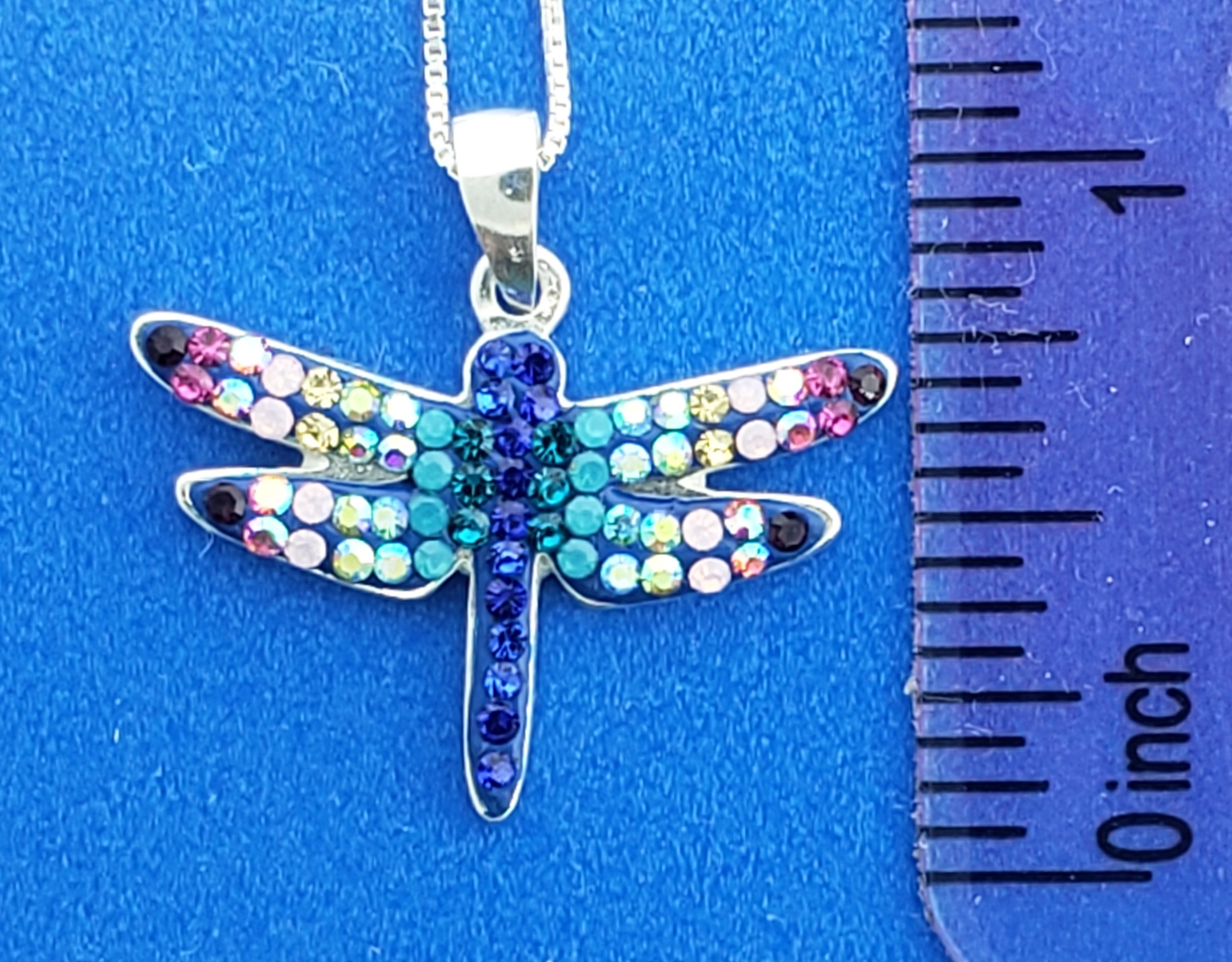 Mosaico Dragonfly pendant, sterling silver & multi colors of Austrian crystals