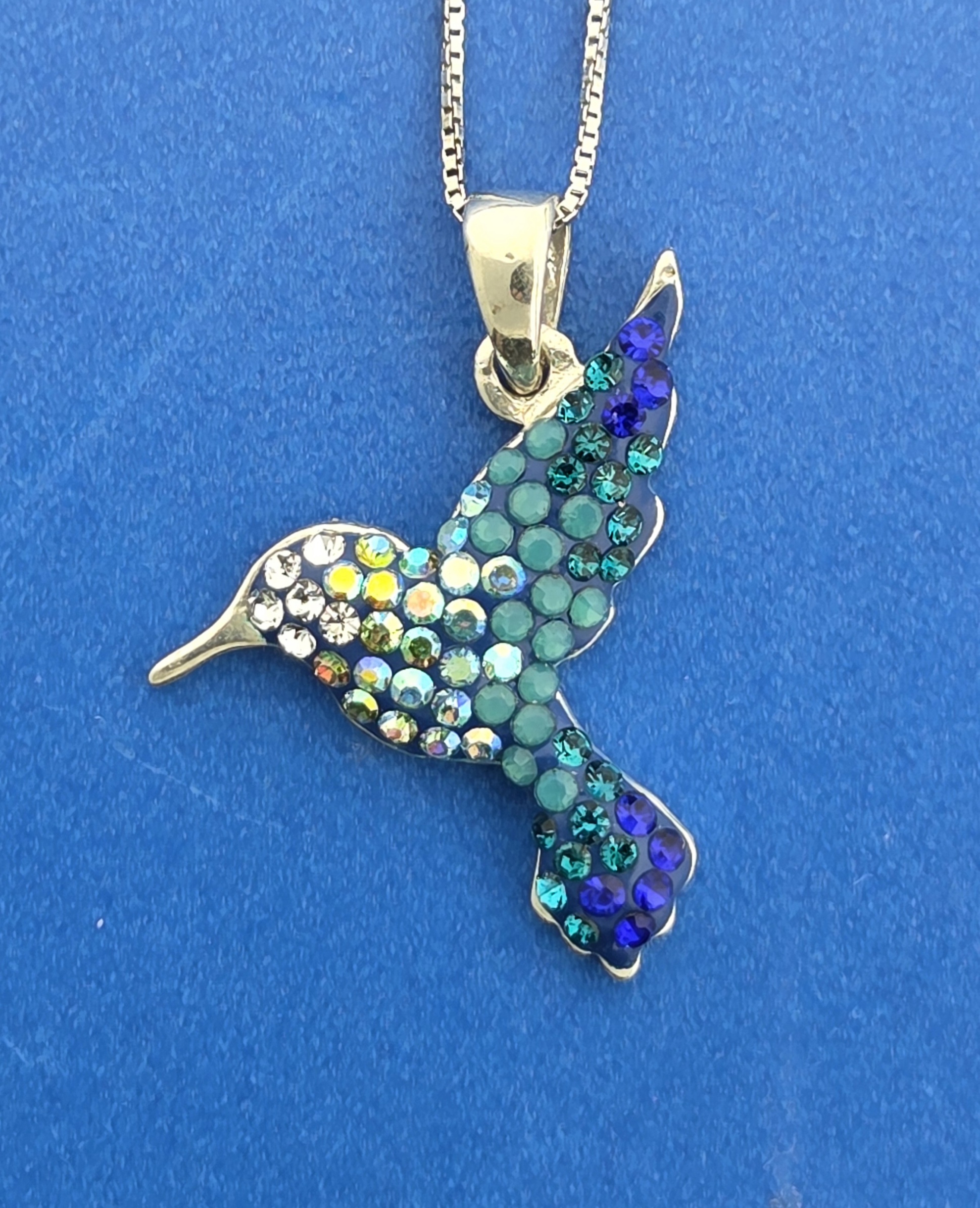 Mosaico sterling silver Hummingbird pendant with handset multi colors of Austrian crystals
