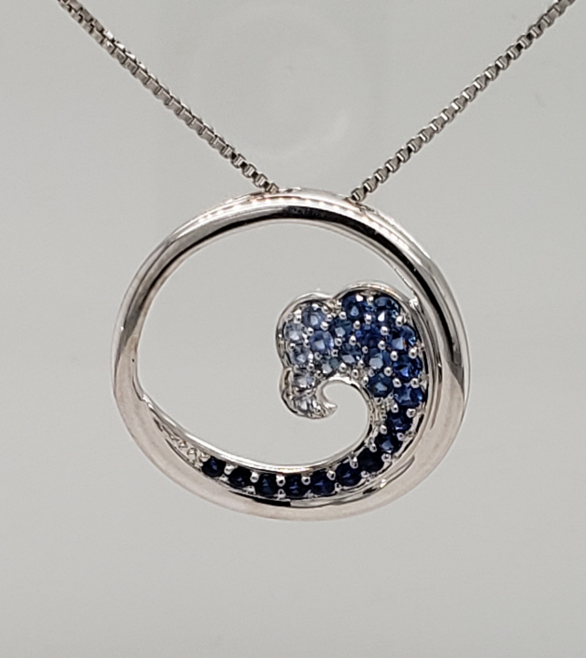Wave Necklace, 14K, Diamonds & Sapphires