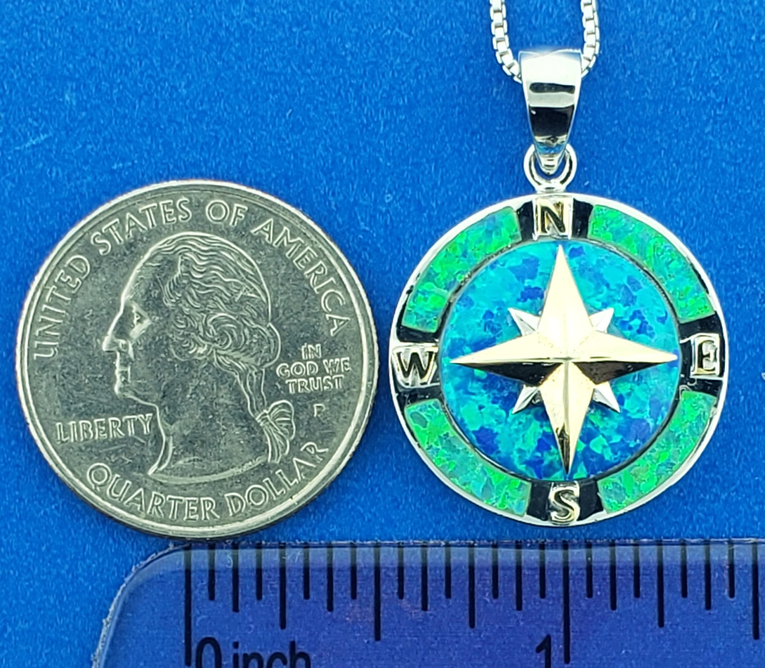 Alamea Compass Rose Opal Pendant, Sterling Silver