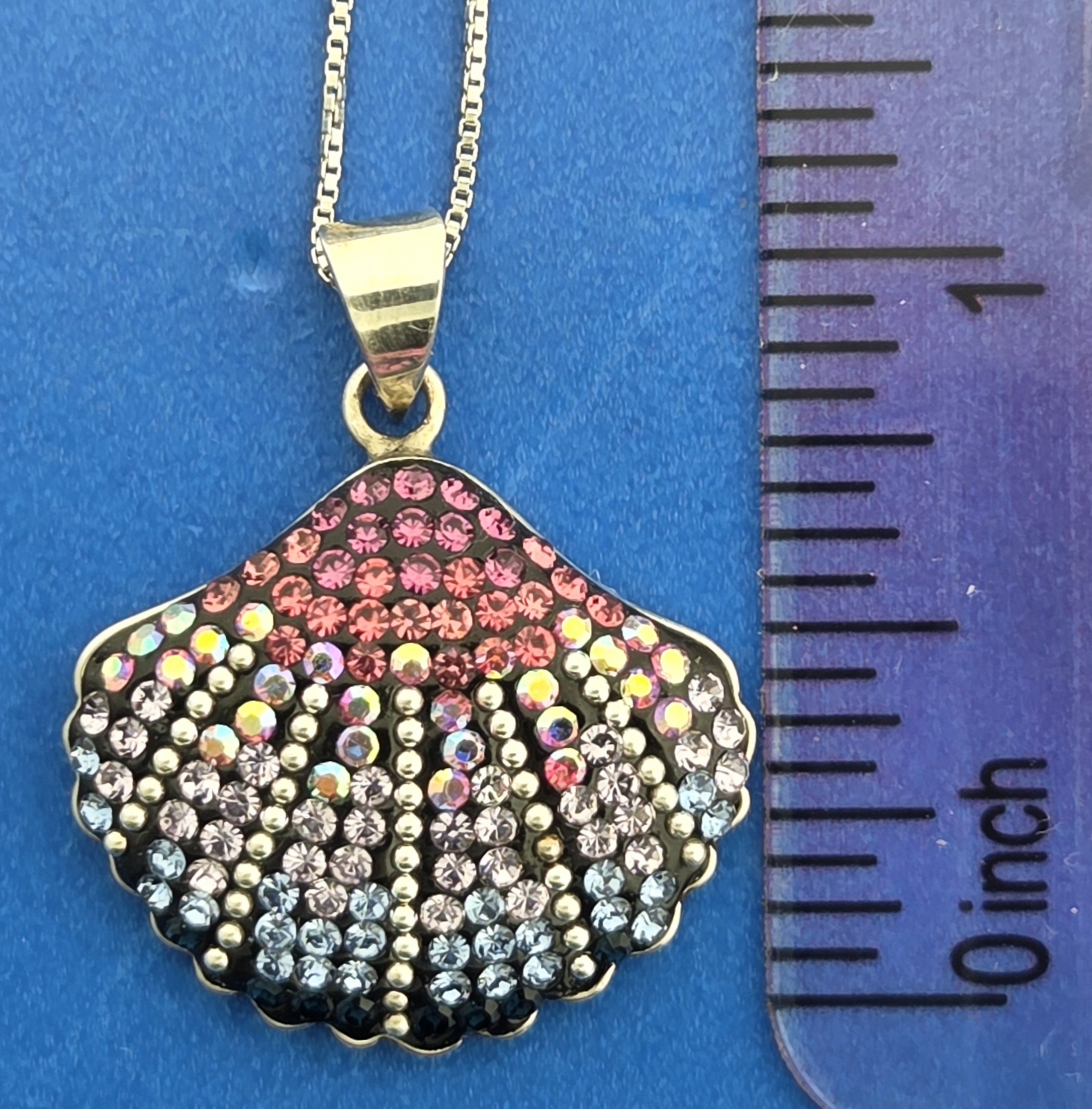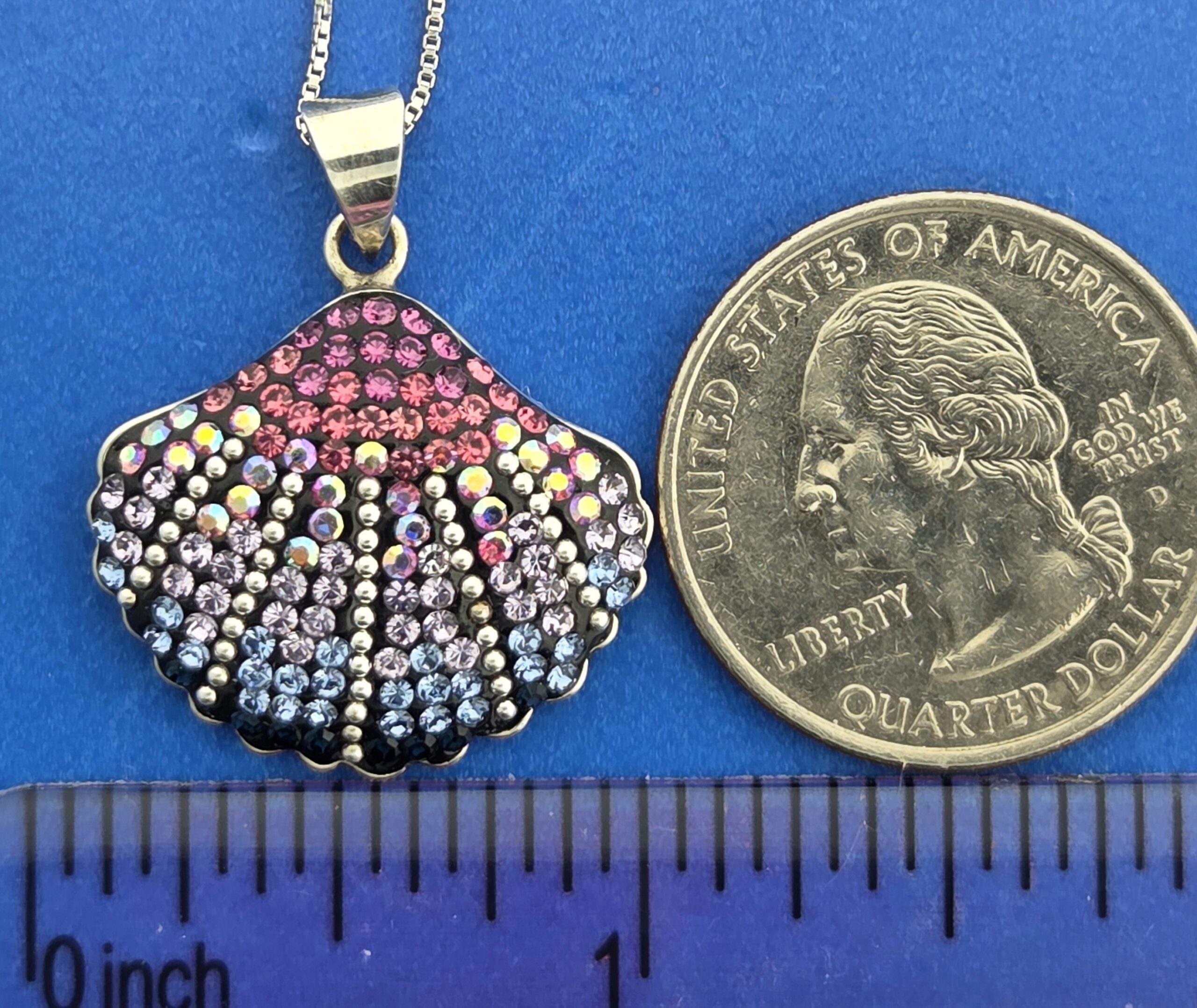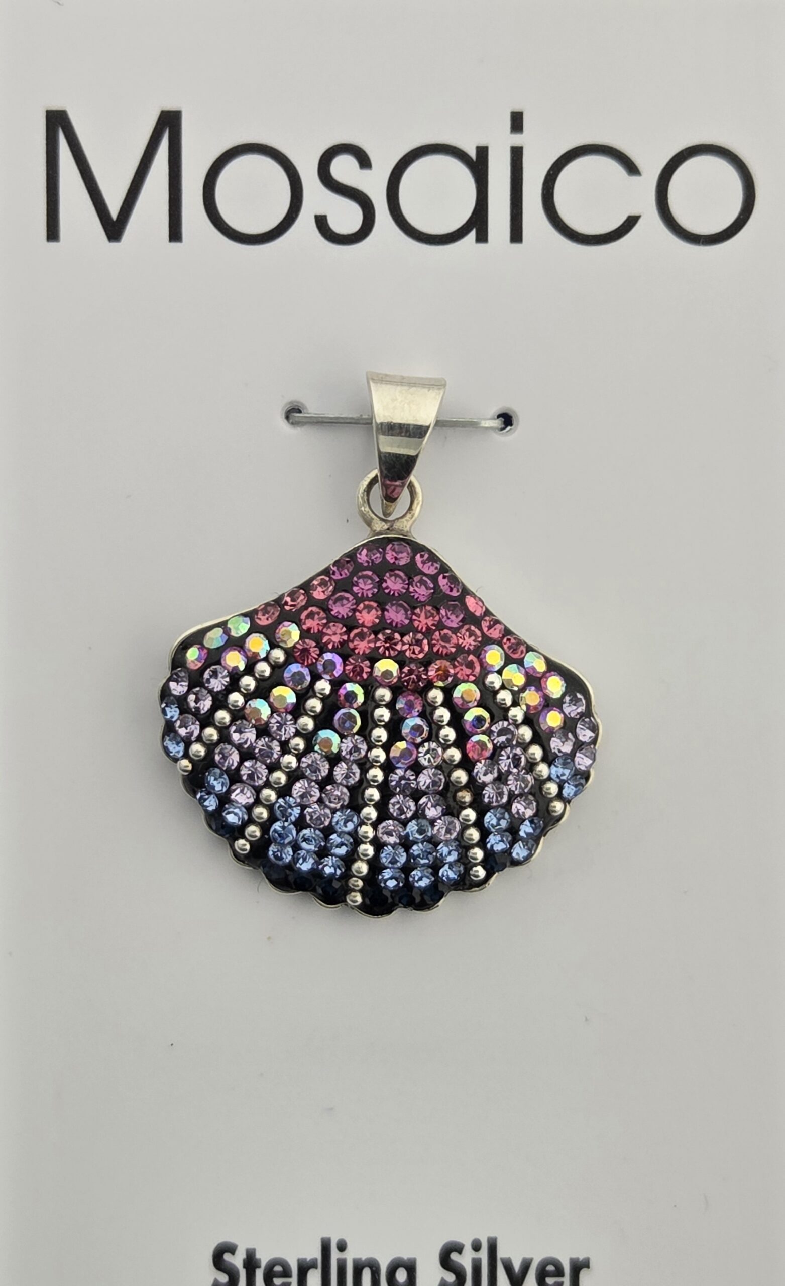 Mosaico sterling silver Scallop Shell pendant with multi colors of Austrian crystals, 15/16″ wide x 1 1/8″ tall