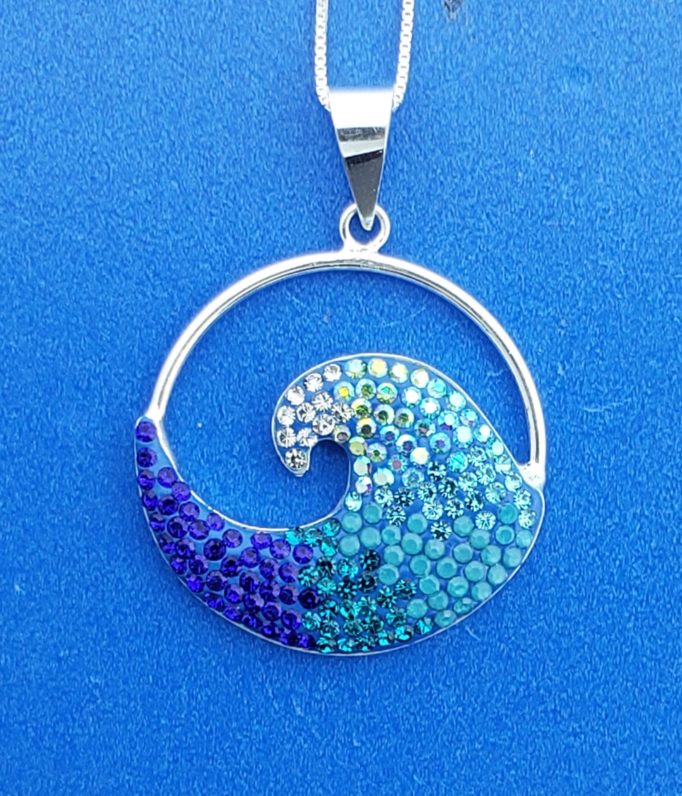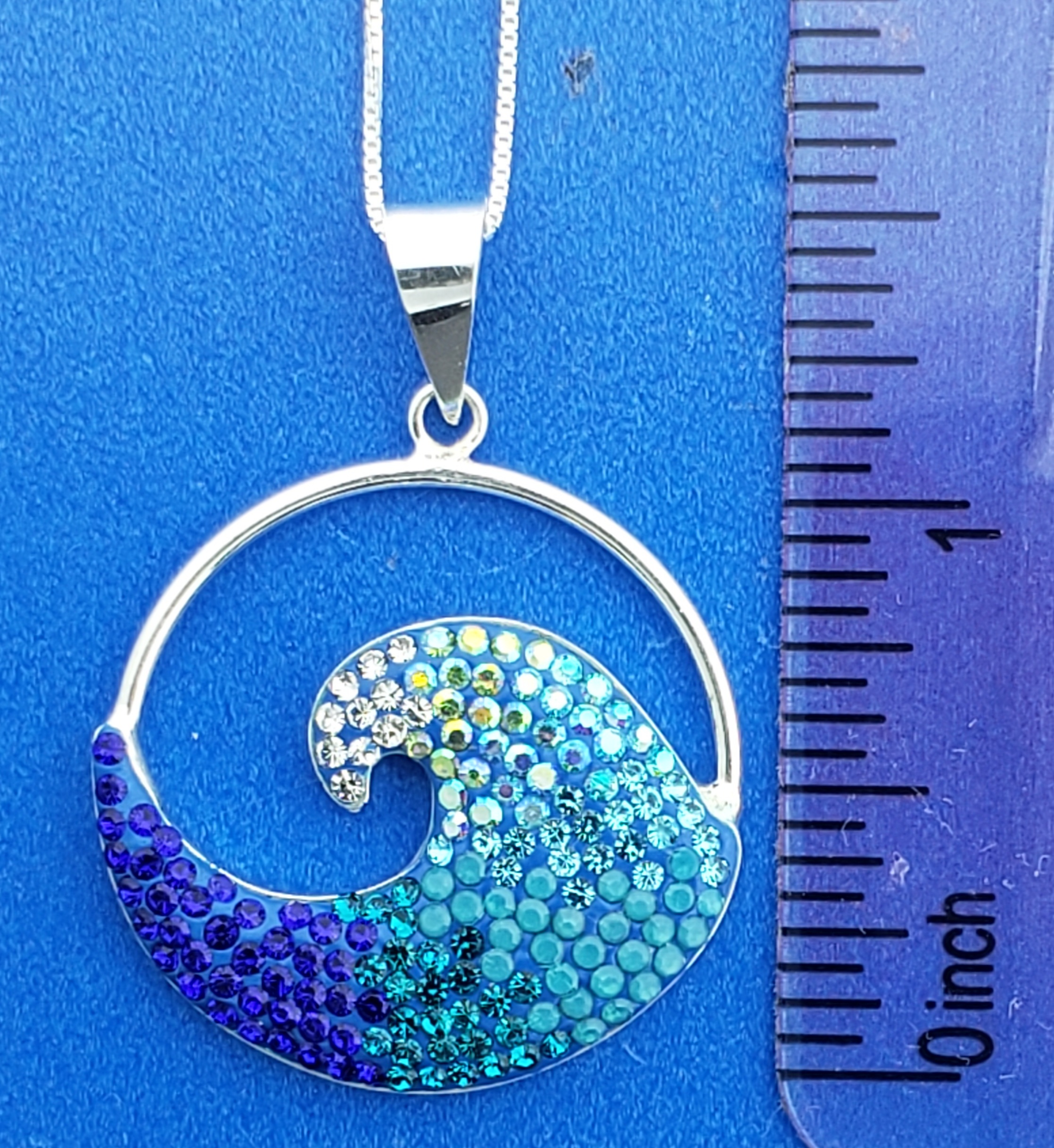 Mosaico sterling silver Wave pendant with multi colors of Austrian crystals, 1 & 1/2″ x 1 & 1/8″
