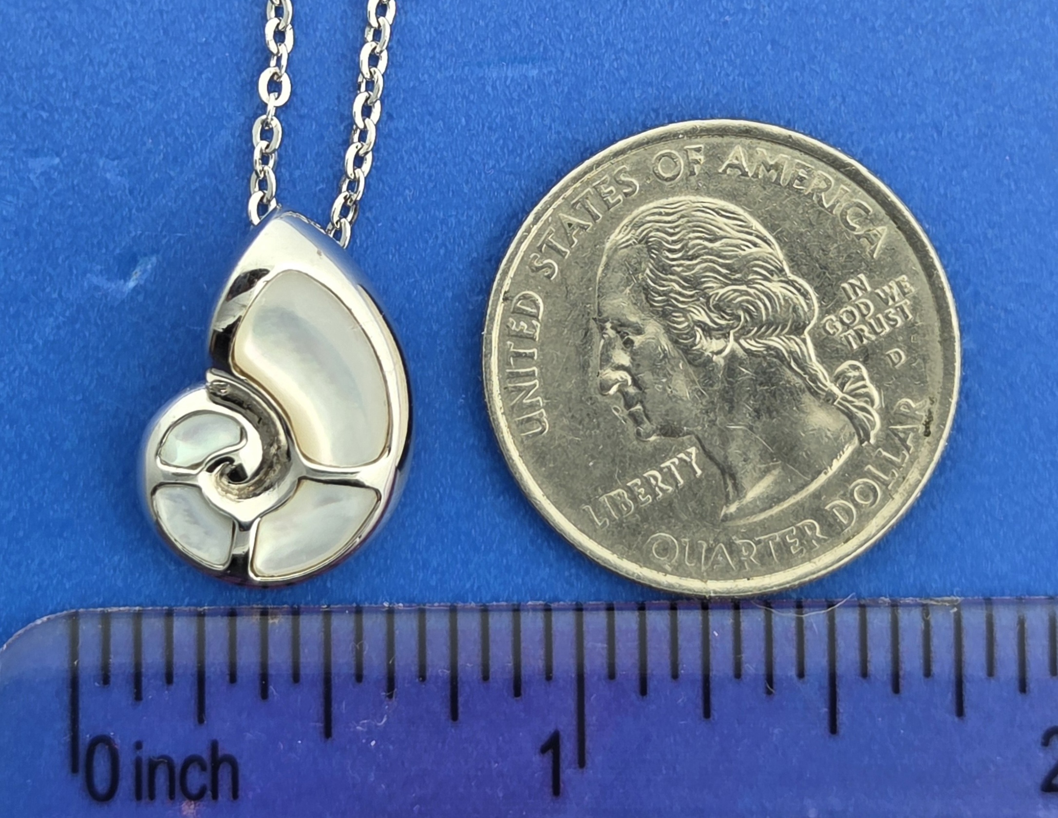alamea nautilus shell pendant sterling silver and rhodium plated, natural white mother of pearl