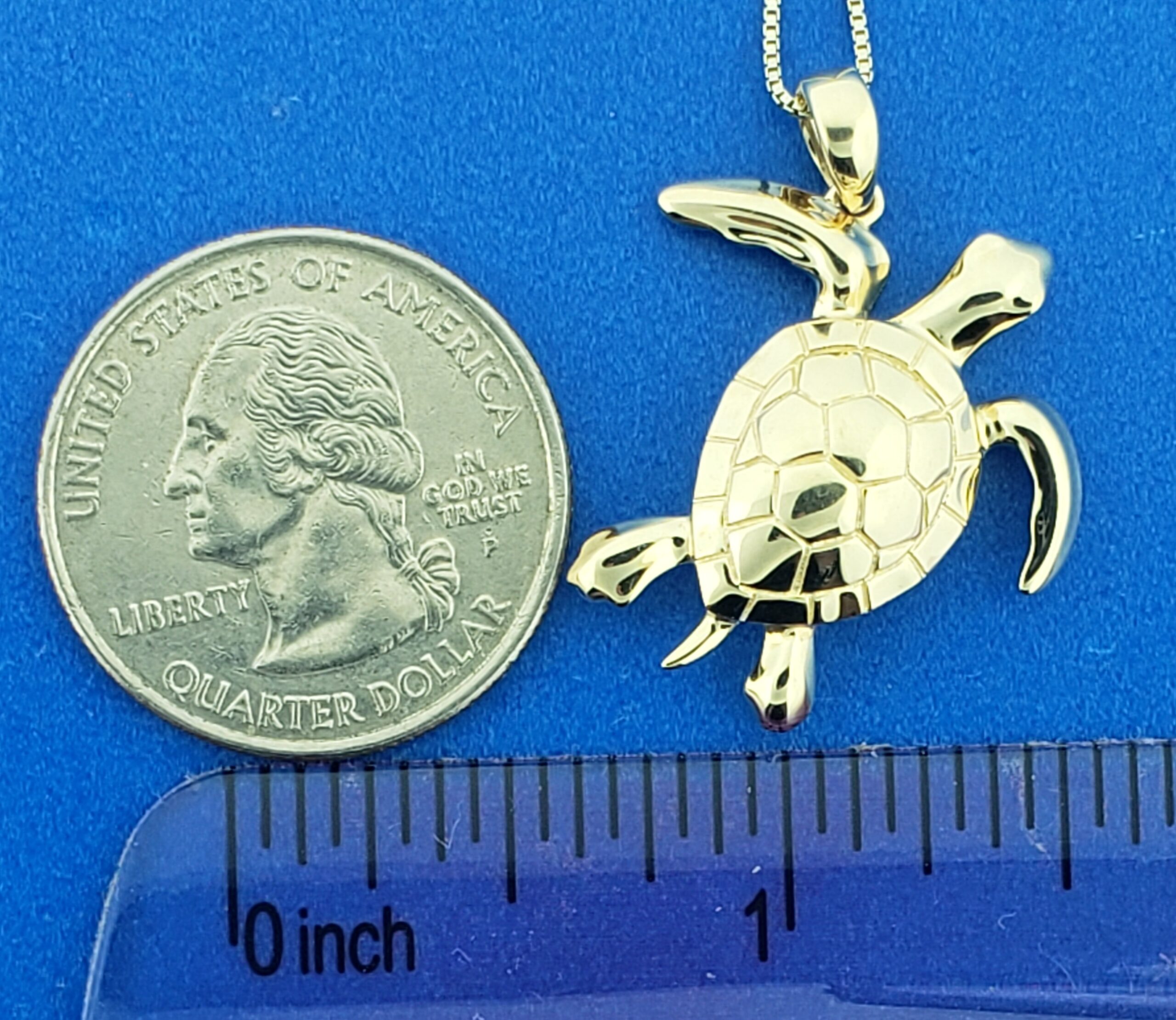 alamea’s 14k solid gold high polish sea turtle pendant; 30mm long x 25mm wide, nice detail, 7mm thick