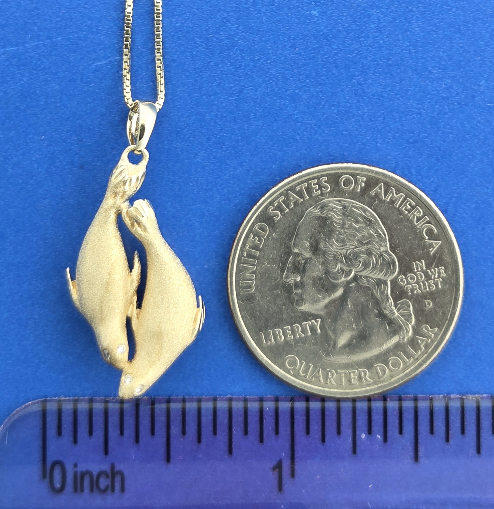 Denny Wong Mother & Baby Seals, Pendant/Necklace, 14K 2-Tone