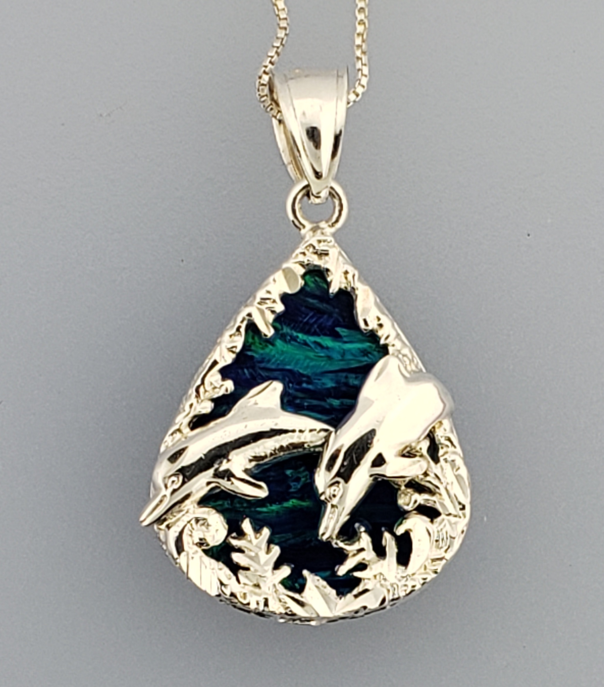 Dolphin Opal Inlay Pendant, Sterling Silver