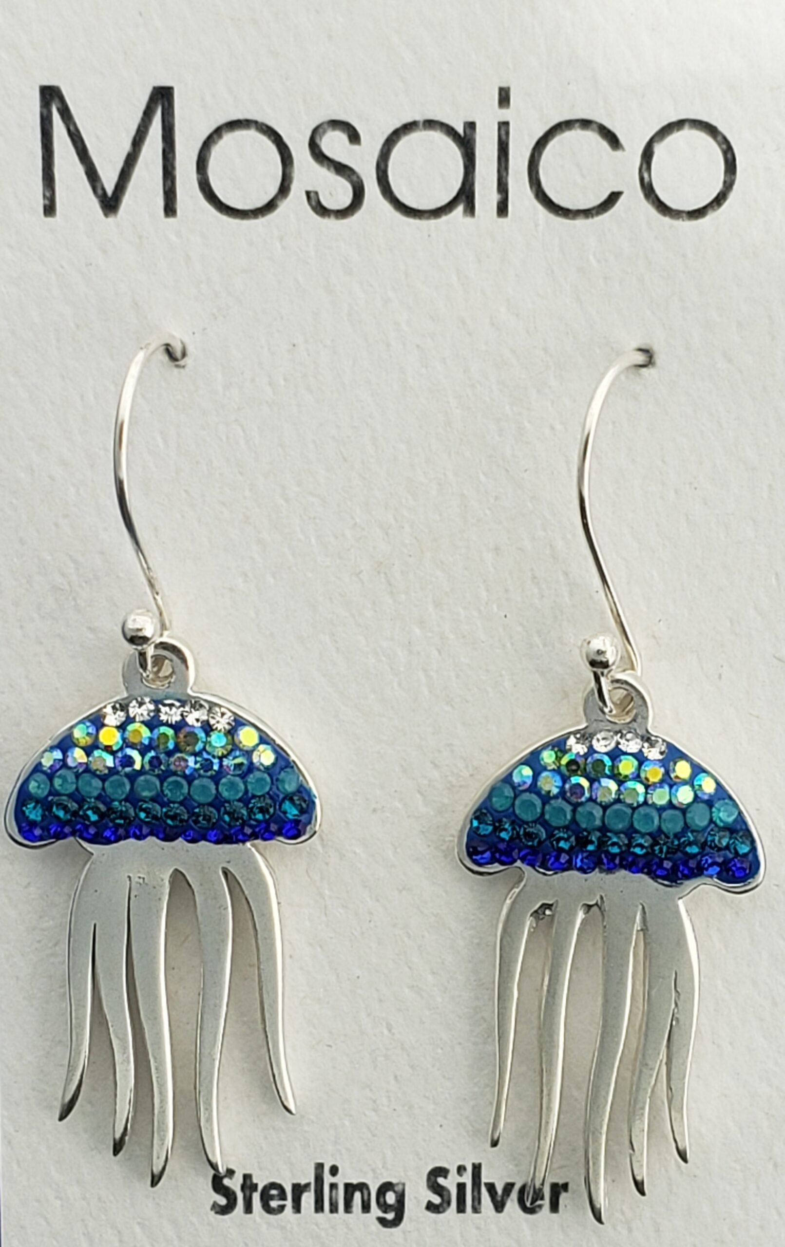 Mosaico sterling silver Jellyfish dangle earrings with multi colors of Austrian crystal