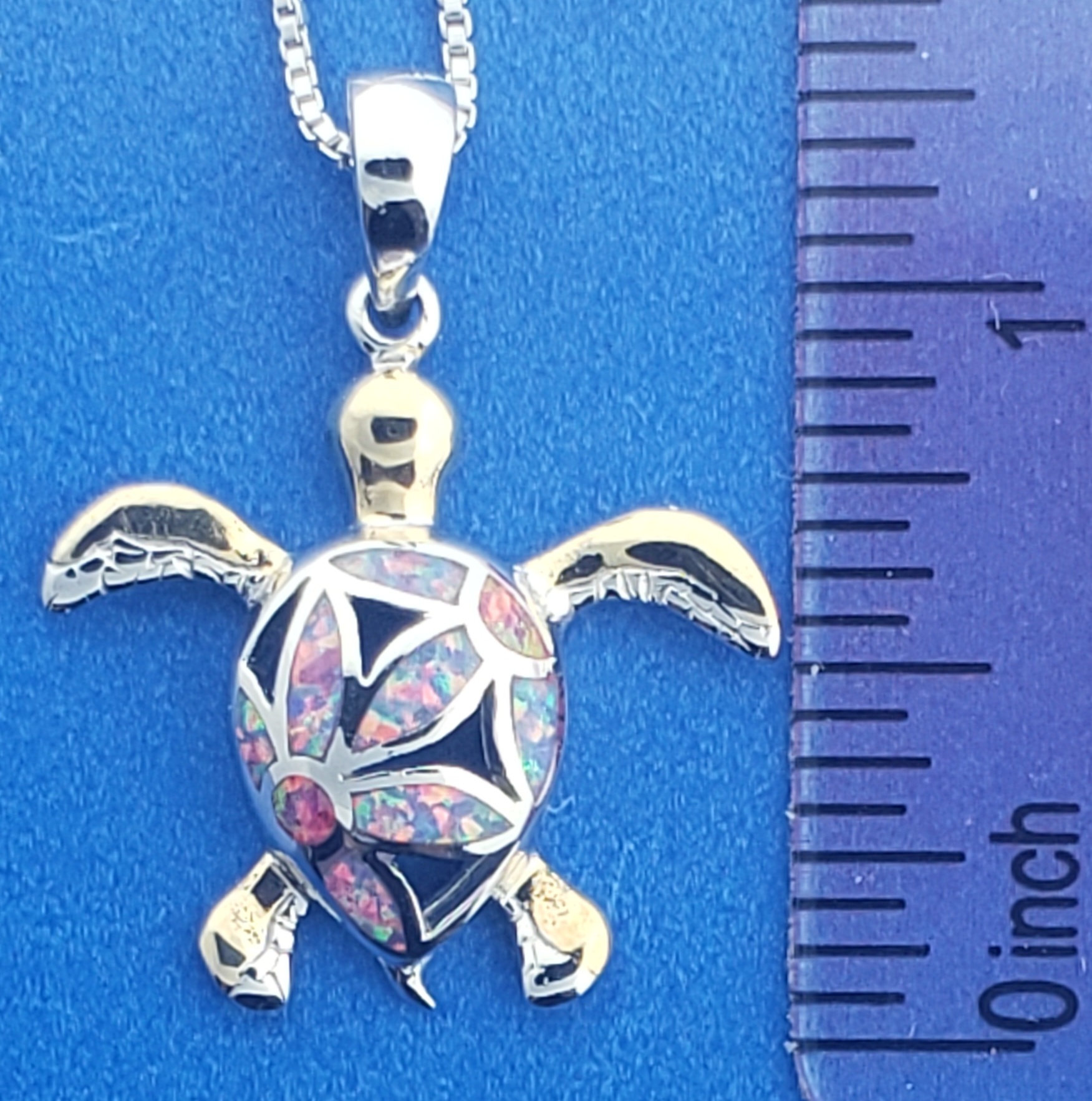 Flip Flop Turtle Blue Opal Pendant, Sterling Silver