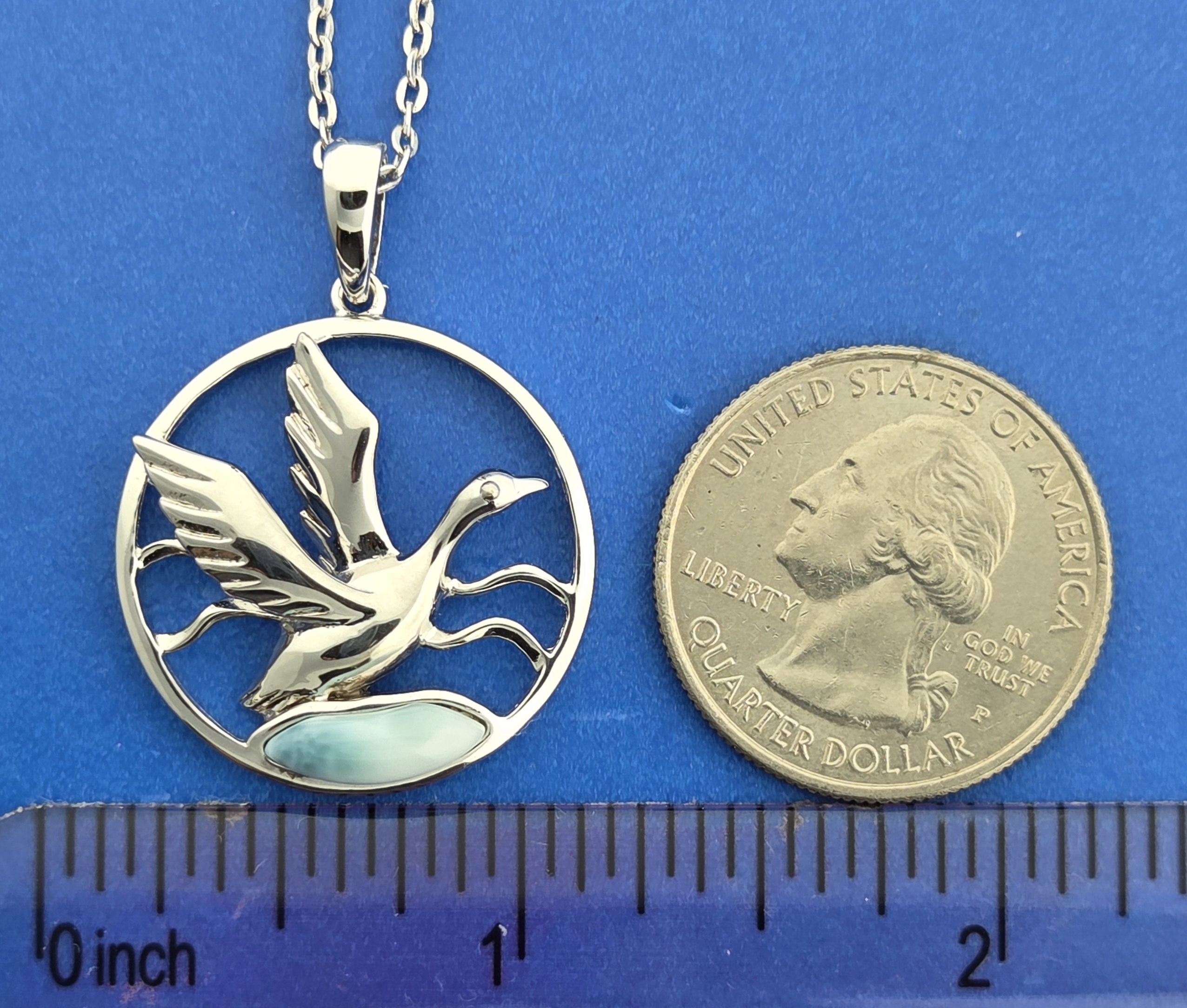 Alamea sterling silver Mallard pendant, Rhodium Plated finish, ocean blue larimar,
