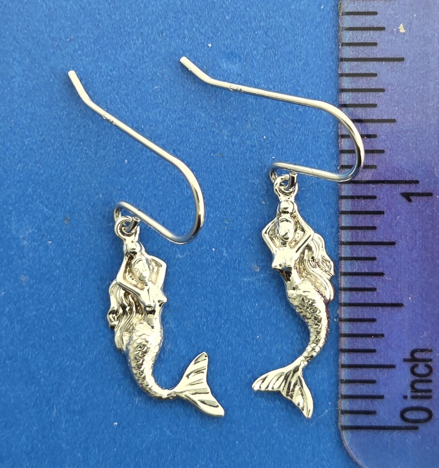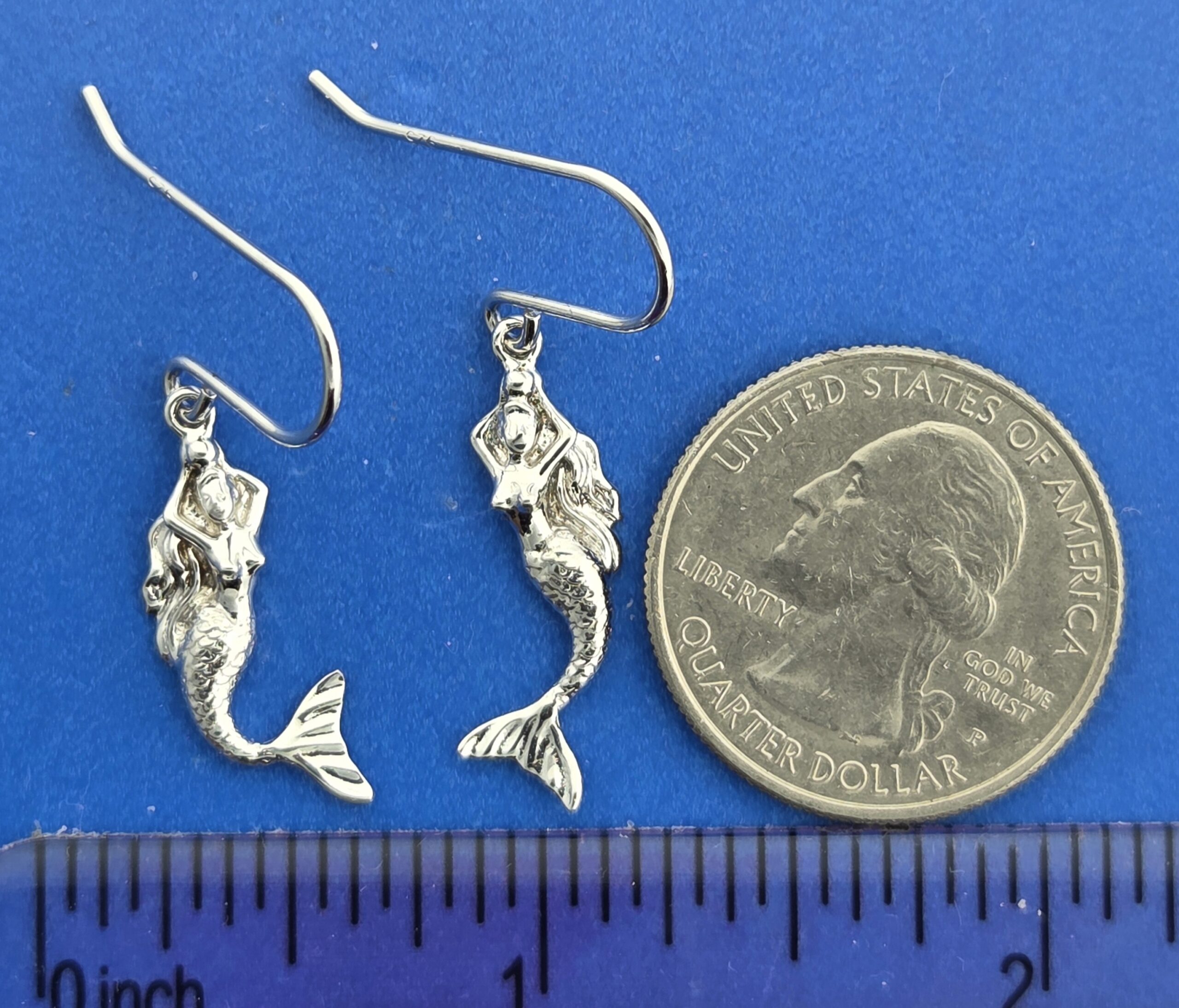 Alamea Sterling Silver & Rhodium Plated dangle Mermaid earrings 2D, Fishhook ear wires