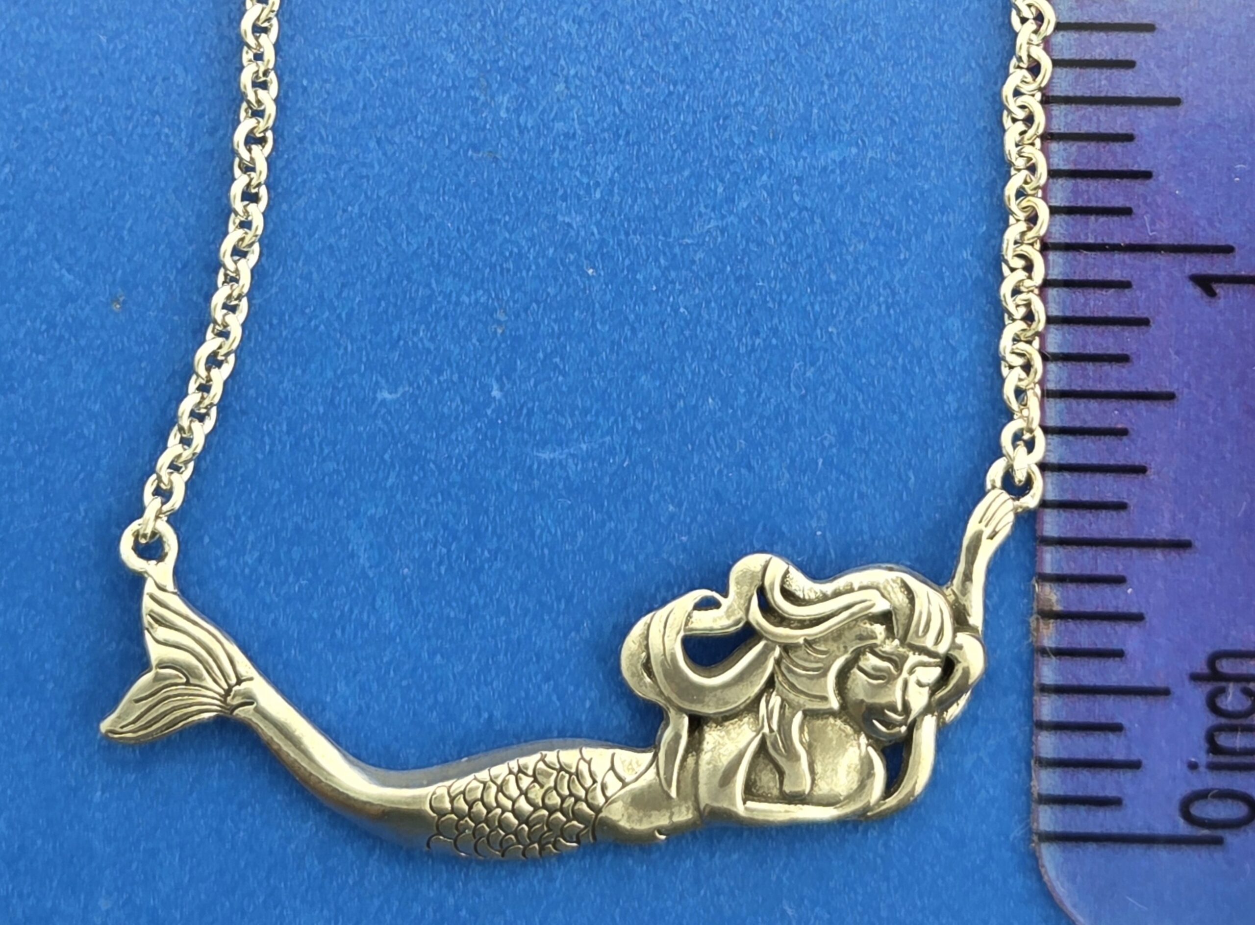 Steven Douglas Mermaid And Dolphin Necklace, Sterling Silver/14K