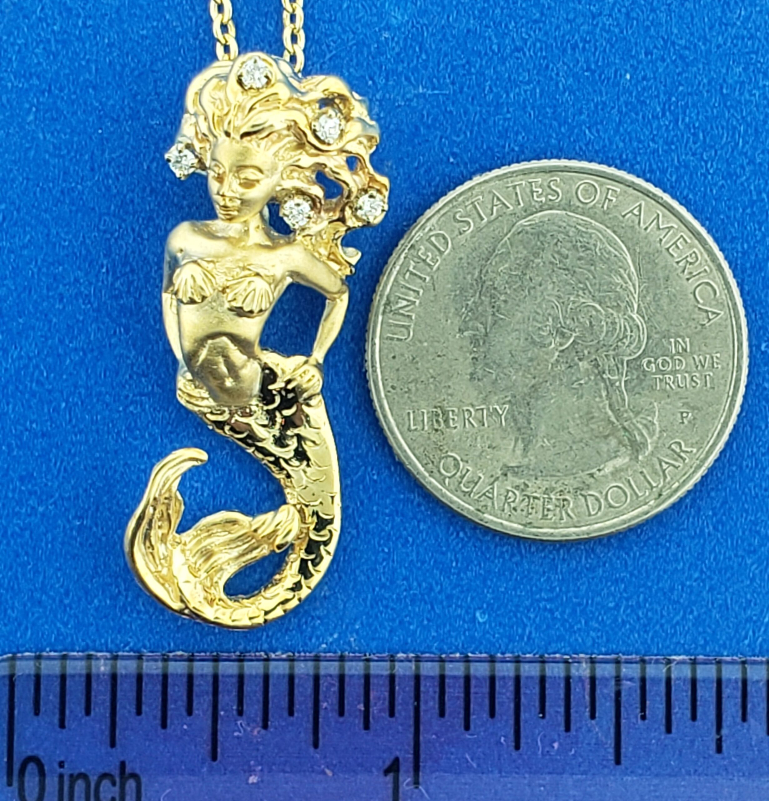 Steven Douglas Mermaid Pendant W/ Blue Diamonds, 14K Yellow Gold
