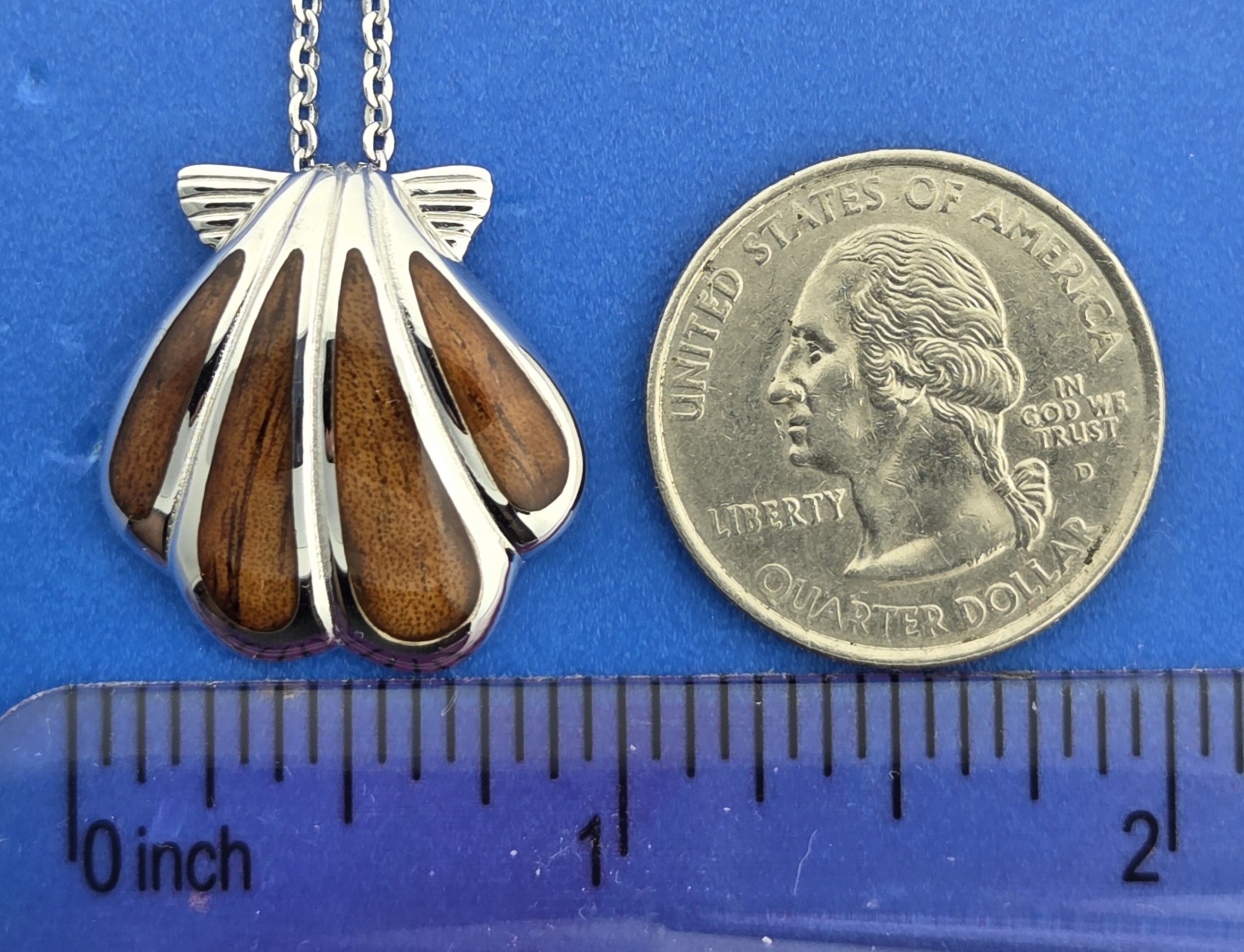 Alamea Sunrise Scallop Shell Koa Wood Pendant, Sterling Silver
