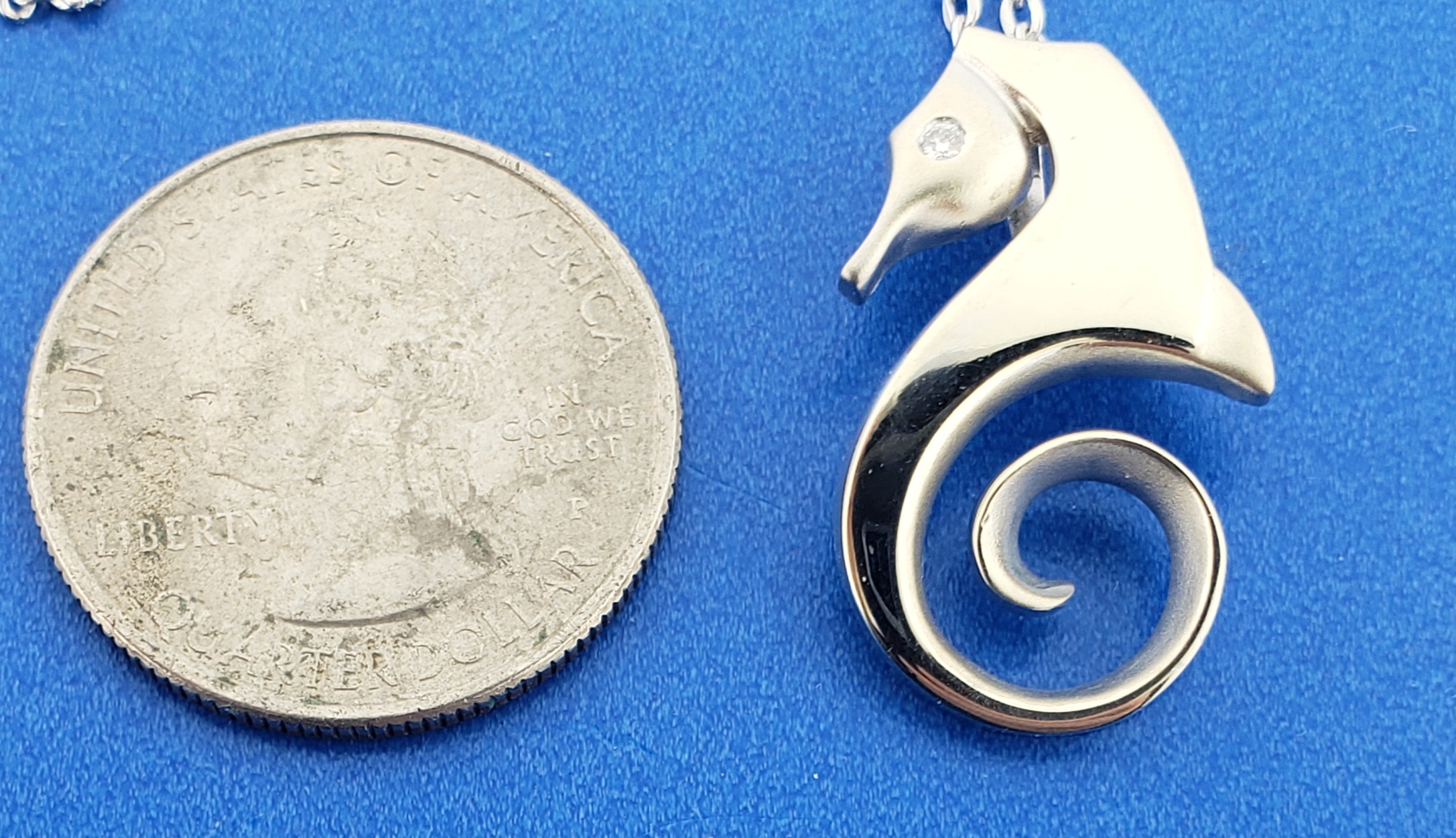 Steven Douglas 14K white gold Seahorse pendant. The Seahorse has a .02Ct Diamond Eye