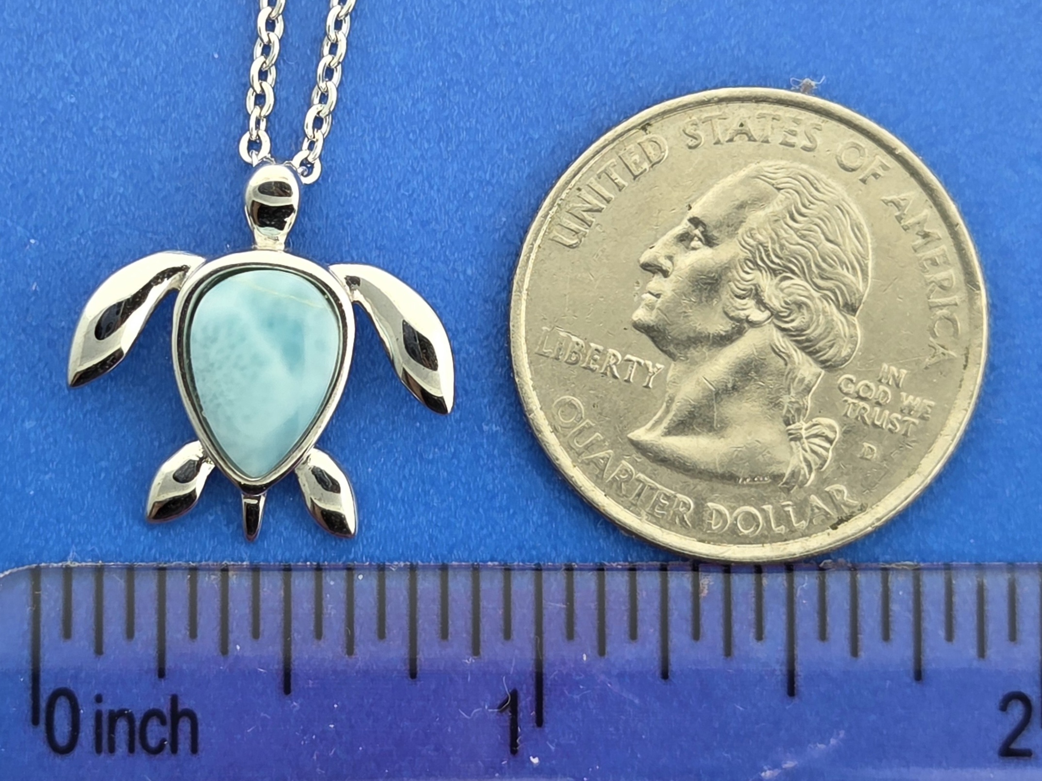Alamea Sea Turtle Pendant, Sterling Silver & Larimar