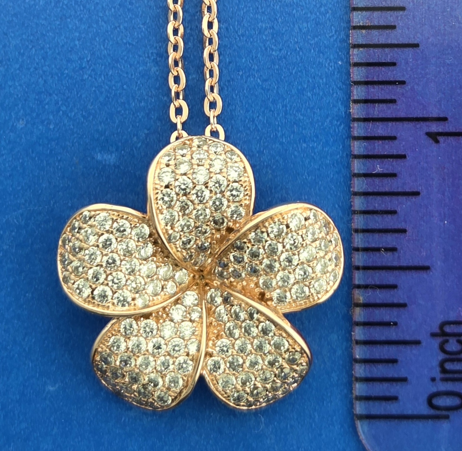 Alamea sterling silver rose gold plated plumeria pendant, pave set diamond like clear czs