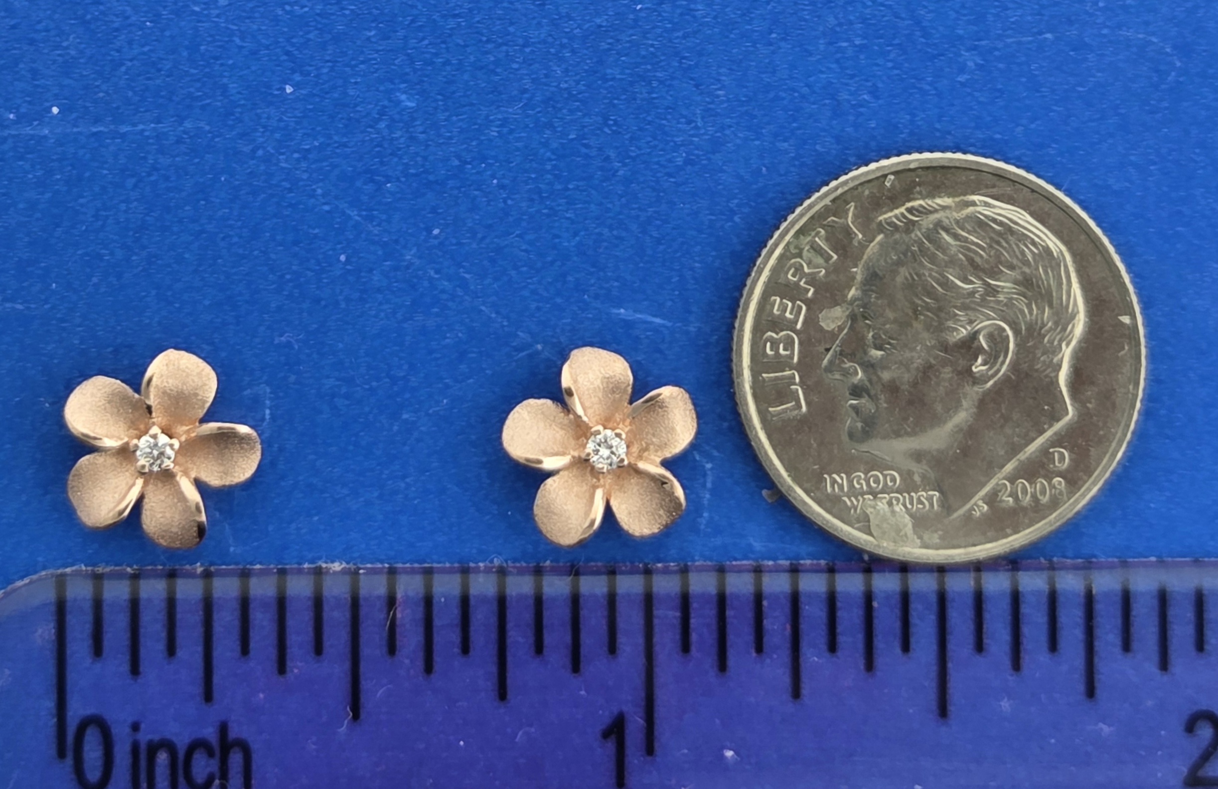 Denny Wong 14K Rose Gold Plumeria Post Earrings,8mm Wide Each Plumeria Has A .02Ct Brilliant Diamond Set in The Center, delicate sand blast finish