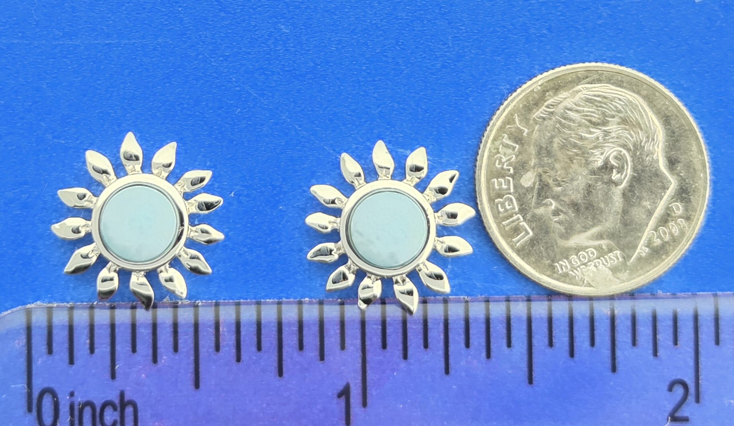 alamea sunflower post earrings sterling silver & larimar, rhodium plated