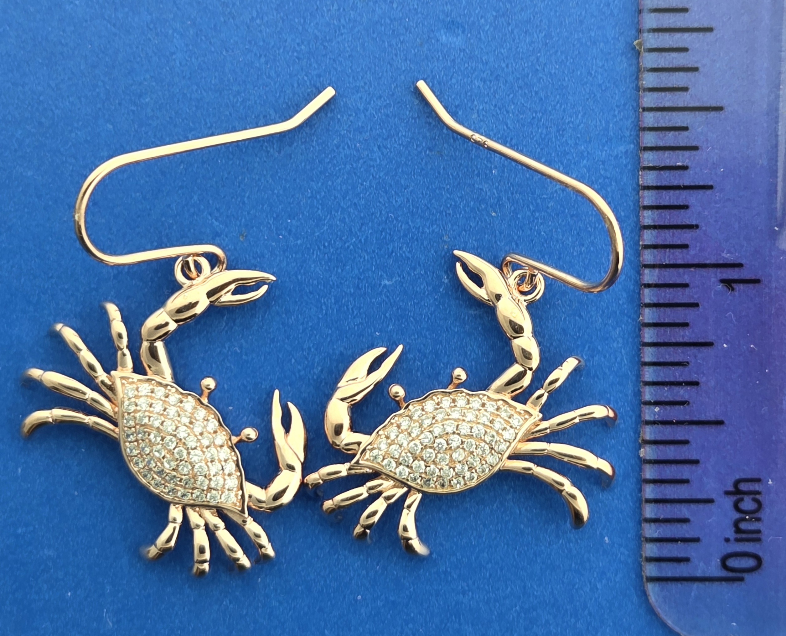 Alamea sterling silver rose gold plated blue crab earrings on fishhook ear wires, pave’ Set with 104 CZ totaling 0.62 ct.