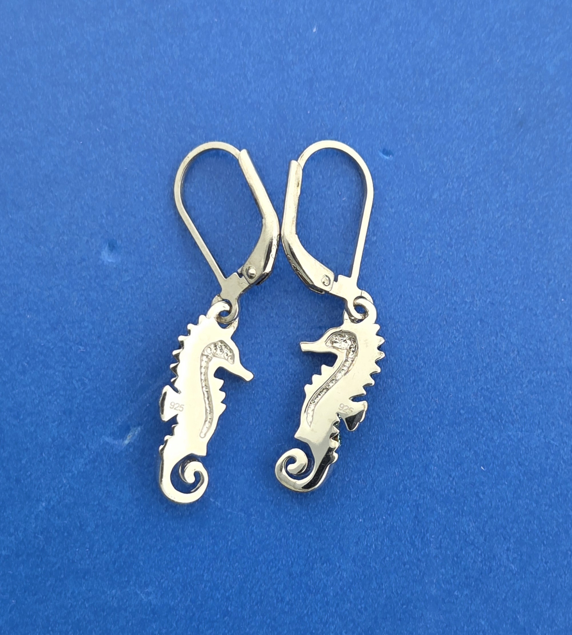 Seahorse Earrings, Sterling Silver & Austrian Crystals